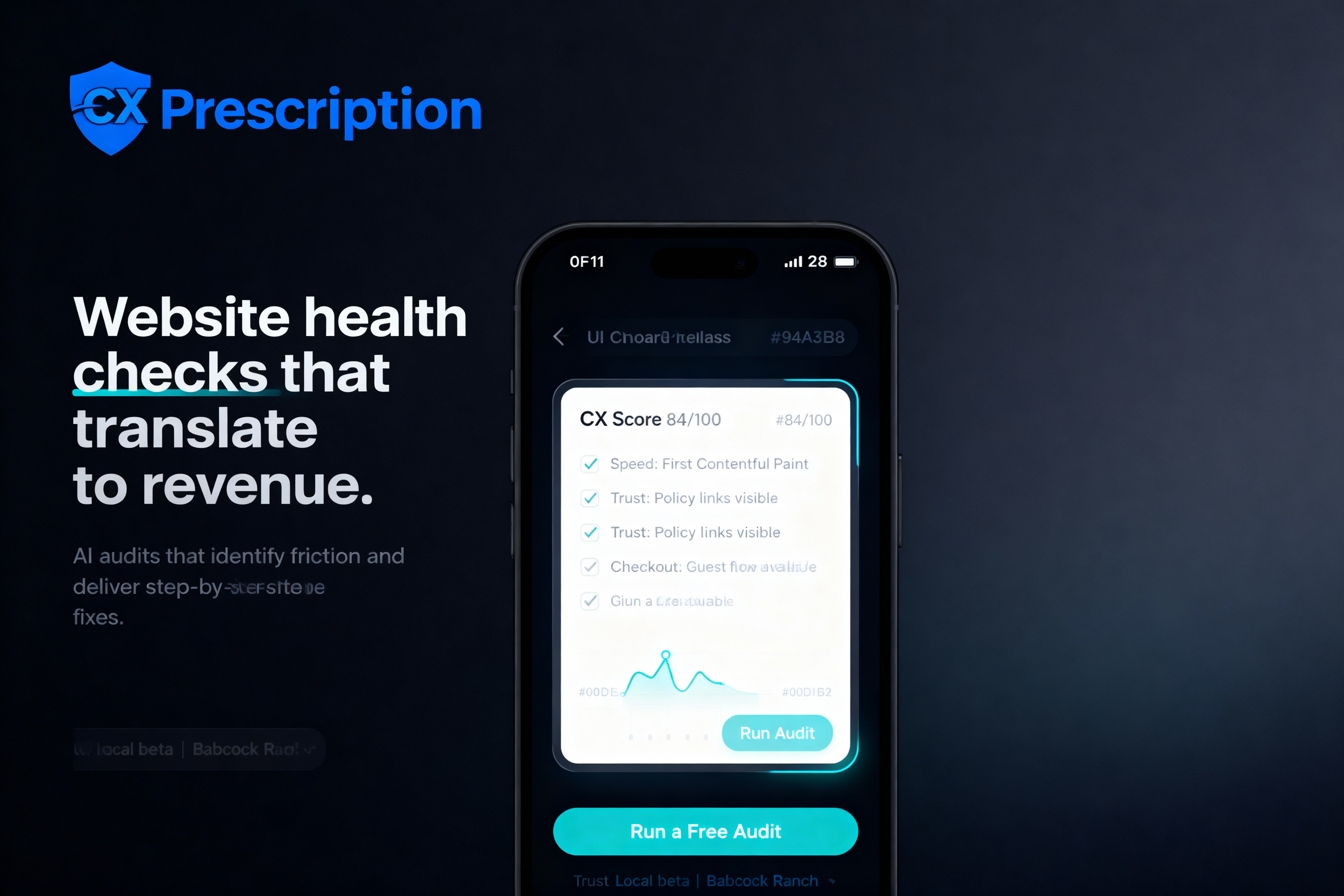 CX Prescription (CXRX) is an AI-assisted website audit that spots the friction your analytics can’t explain—slow loads, confusing layouts, thin trust signals, shaky checkout.